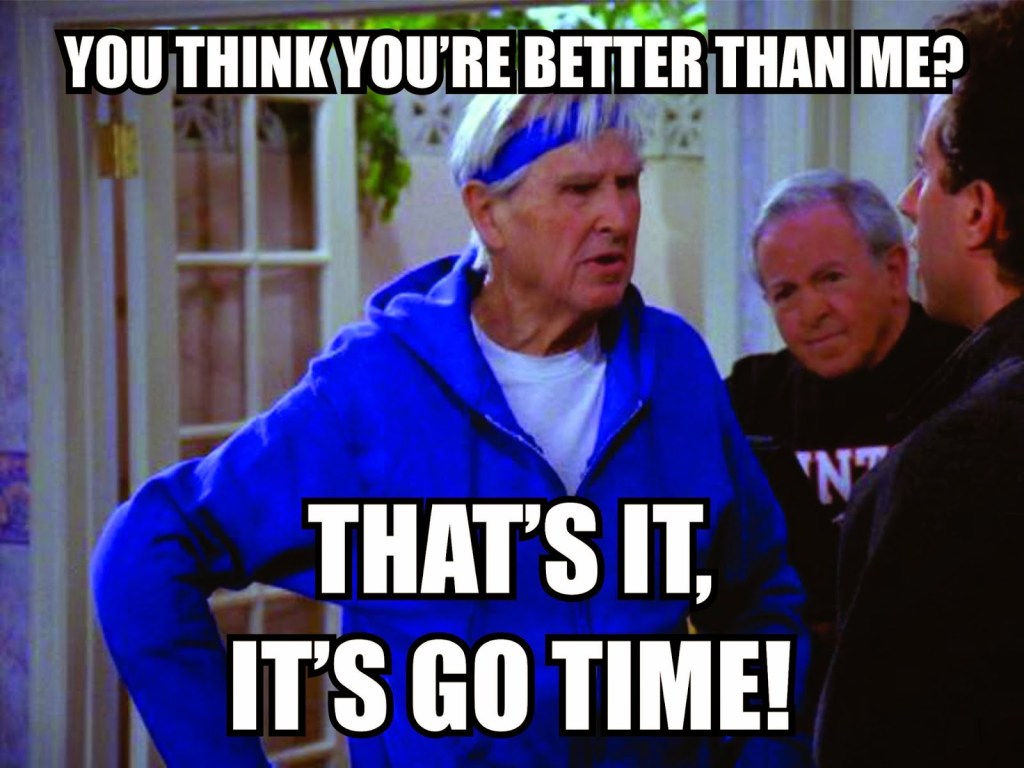 You think you’re better than me?! It’s go time! My favorite Seinfeld episode is titled “The English Patient”. This one stands out the most to me because of the Mandelbaums, especially Izzy (aka Lloyd Bridges). He lived in Del Boca Vista retirement community with Jerry’s parents and is always quick to show off his feats of strength.