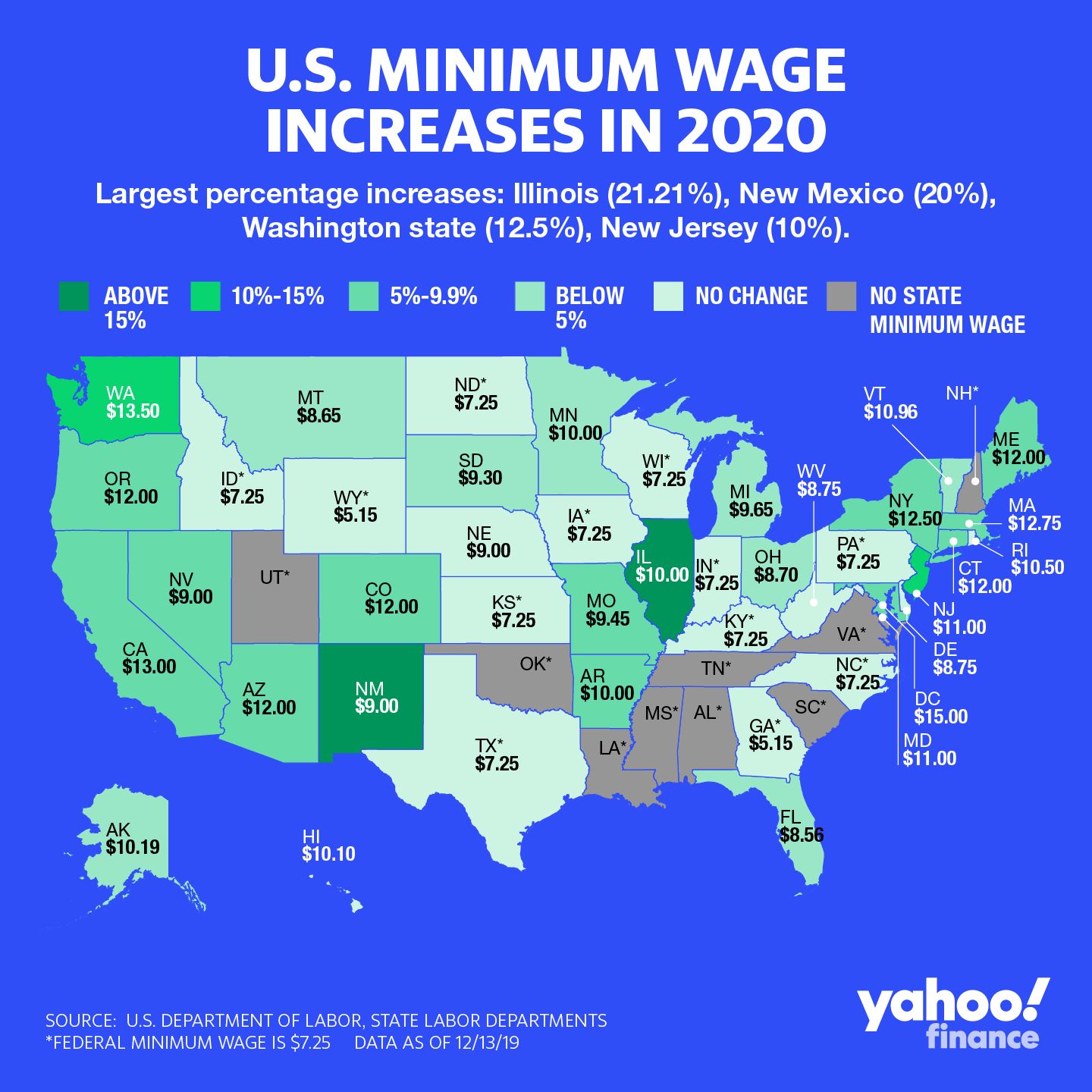 Three more states and the District of Columbia have wage increases scheduled to take effect over the course of 2020.