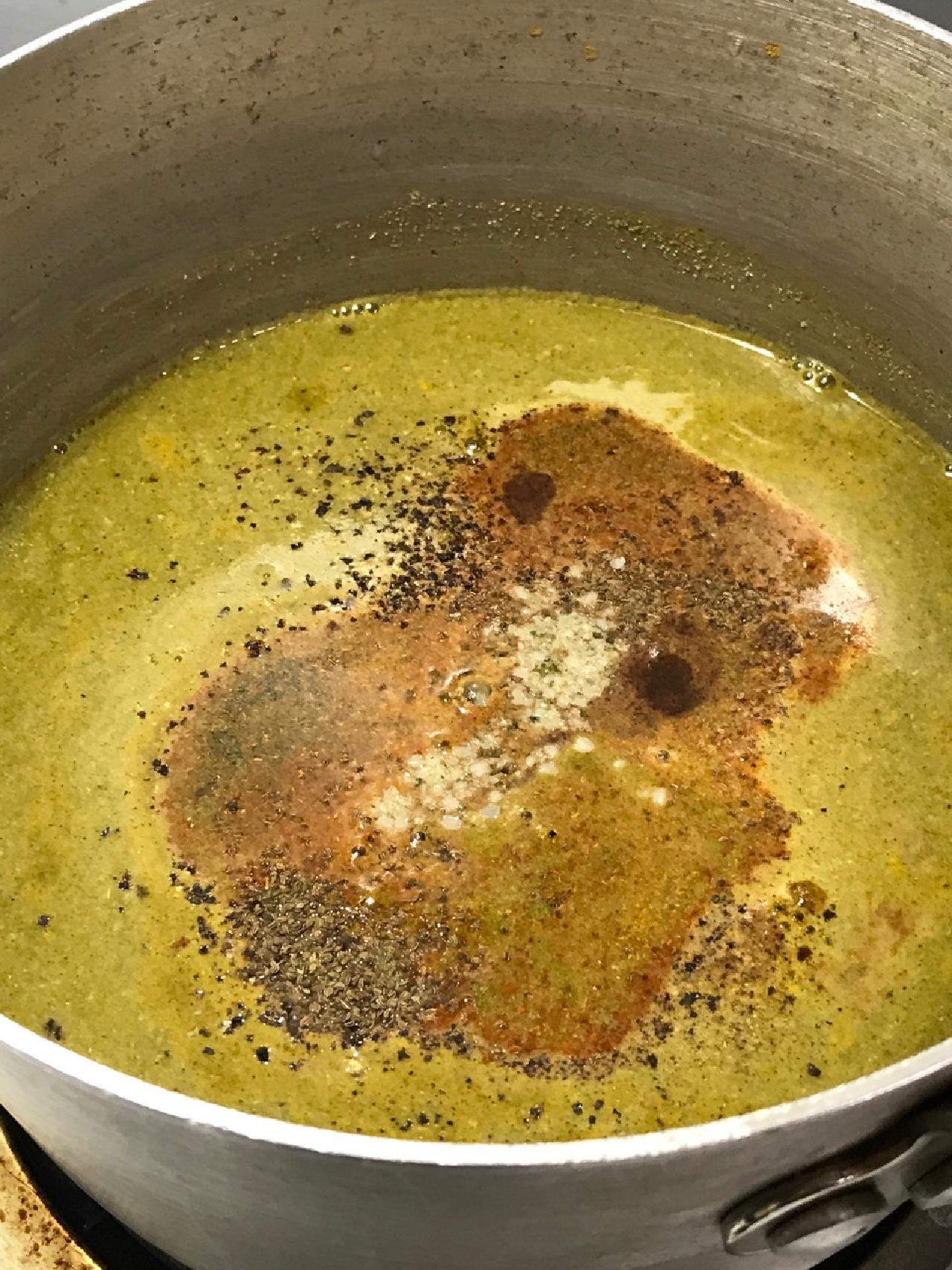 4- Raise heat to medium, cook about 7 minutes till water from veggies evaporates and only oil remains. Remove from heat.