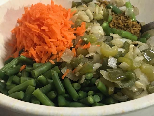 Steve isn’t someone who thinks oils are bad for you. Quite the contrary. To him they’re helpful not hurtful to all his systems. So I put more oil in for him. Maybe he’s right, maybe he’s wrong, but I aim to please, so lots of oil it is. This recipe will make five large portions for five lunch days.