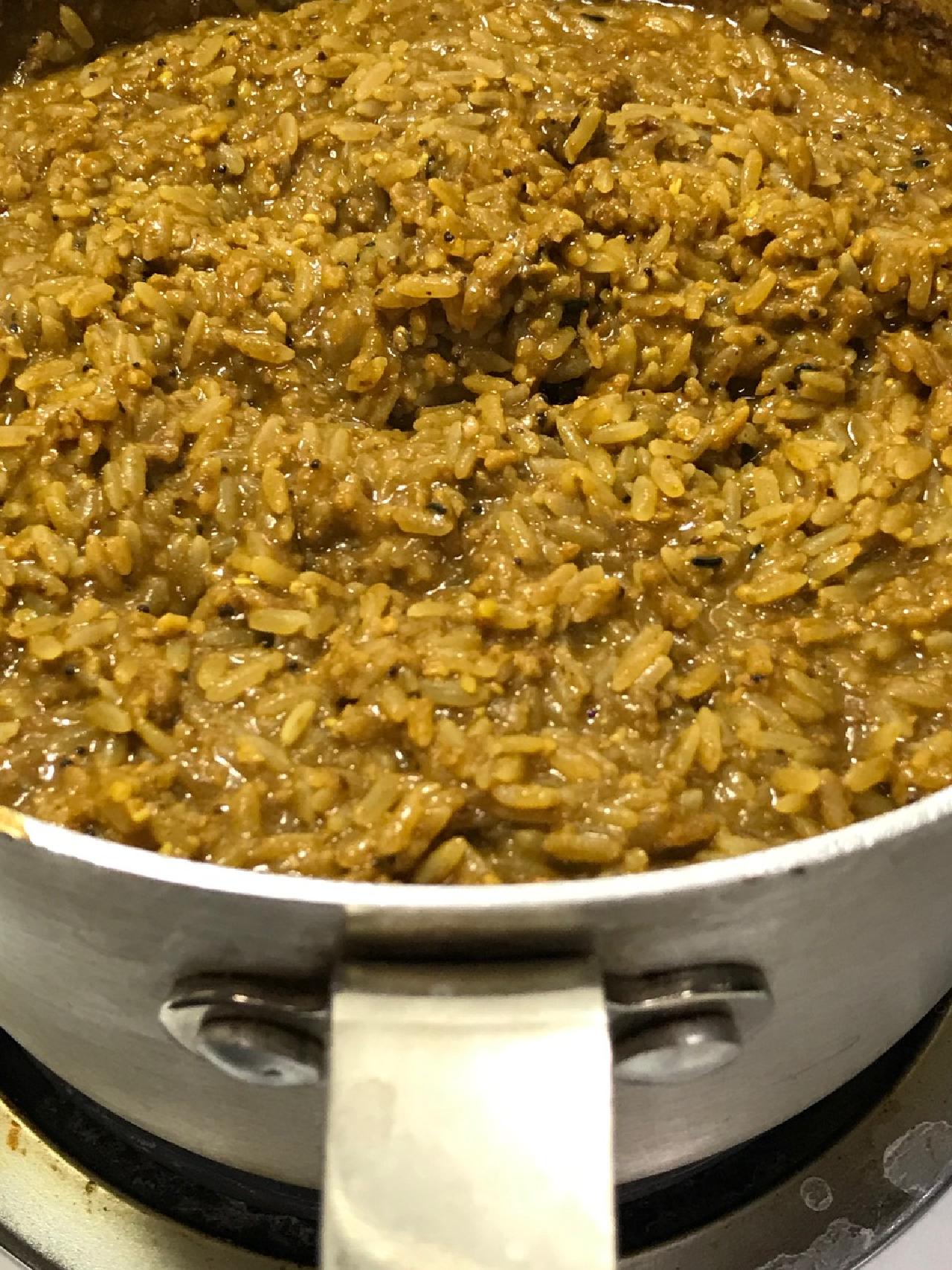 2- Return to heat, bring to boil, add rice all at once, stir well, then reduce heat to low.